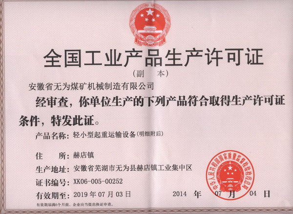 公司名稱:安徽省無為煤礦機械制造有限公司